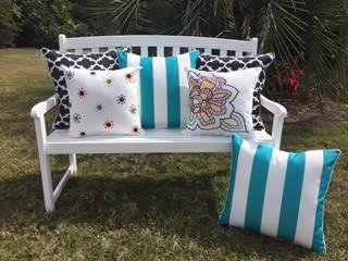 The 4k class brings you a beautiful garden bench with hand designed pillows.